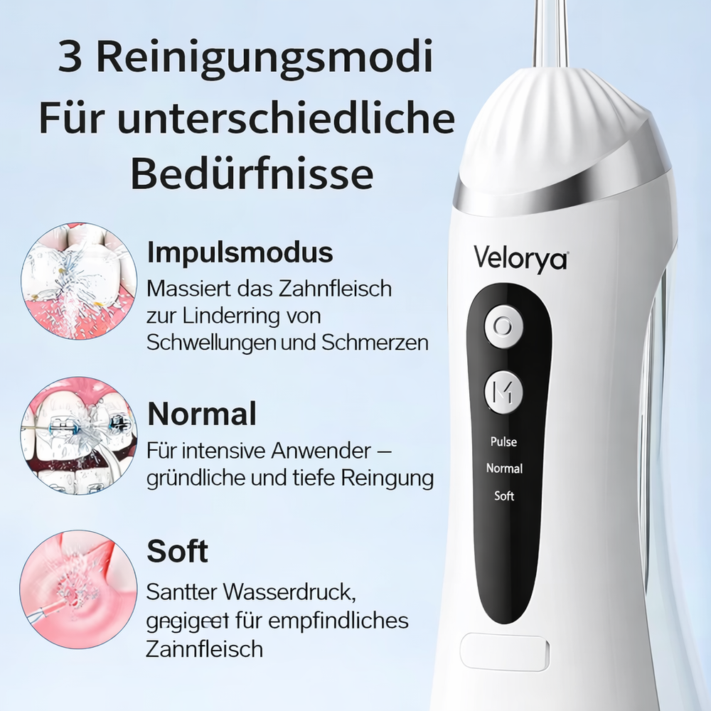Willkommen bei Velorya – dem Pionier der modernen Mundhygiene. Unsere innovativen Wasser-Zahnreinigungssysteme revolutionieren die tägliche Zahnpflege mit Präzision, Eleganz und wissenschaftlich bewiesener Wirksamkeit.